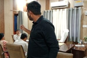 सीएमओ कार्यालय पहुंचे कन्हैया मिश्रा ने जांच रिपोर्ट को गलत बताते हुए विरोध जताया और आरोप लगाया कि जांच में शामिल डॉ. अभिषेक मिश्रा ने पांच लाख रुपये की मांग की थी।